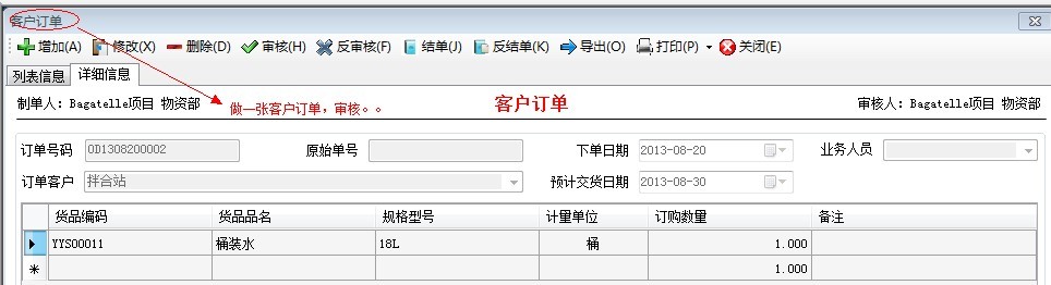 首先,我們到訂單管理,客戶訂單,這里做一張客戶訂單,審核。