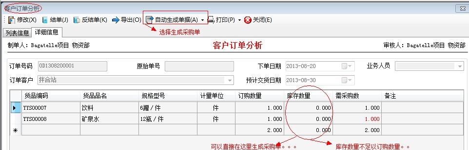 根據(jù)客戶訂單生成客戶訂單分析再生成采購單的整個過程