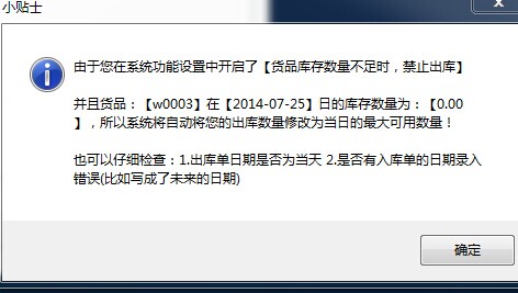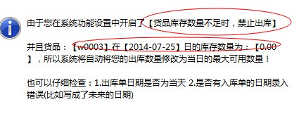 庫存數(shù)不足,禁止出庫