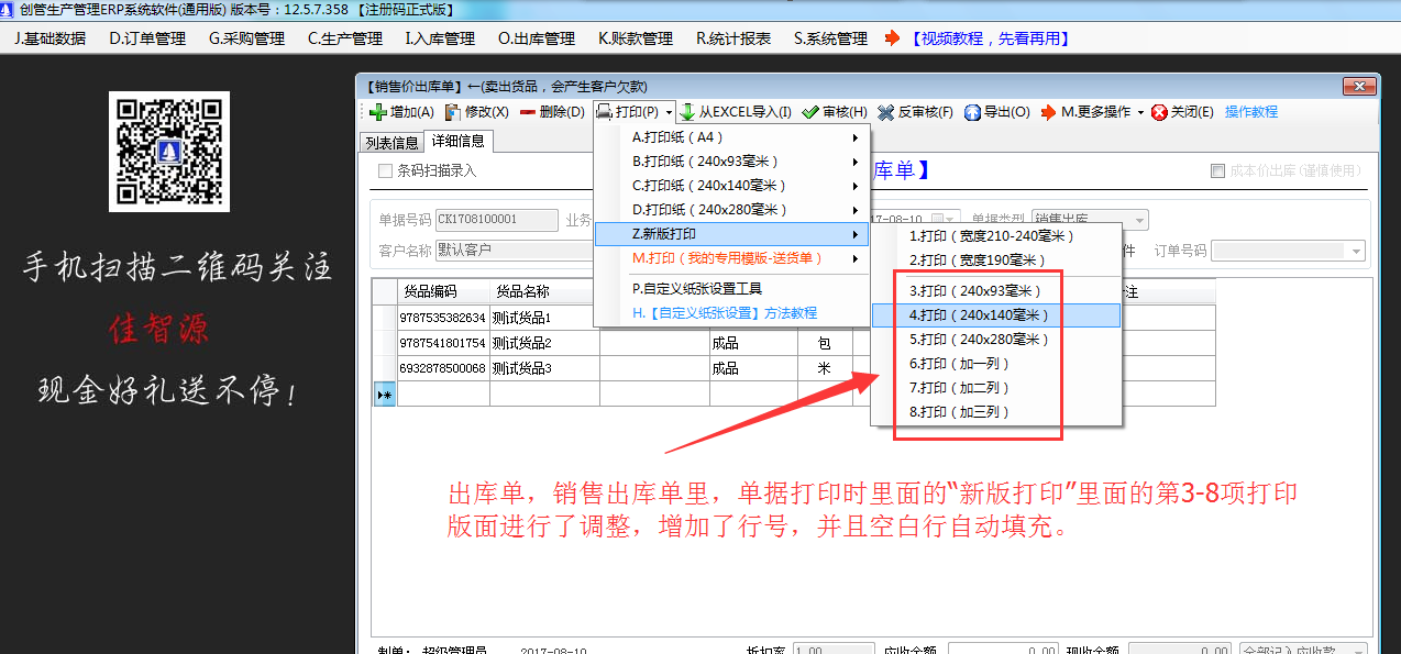 《看圖說(shuō)話》銷售出庫(kù)單打印模版調(diào)整增加行號(hào)及自動(dòng)填充空白行