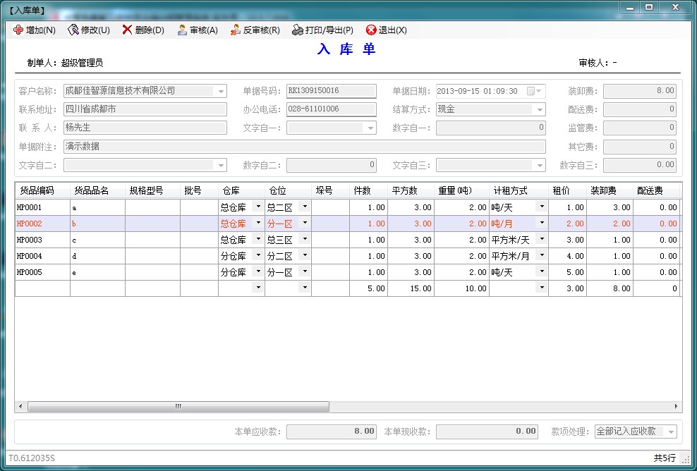 企管王第三方物流倉(cāng)儲(chǔ)出租管理系統(tǒng)是一款專門為第三方物流企業(yè)開發(fā)設(shè)計(jì)的用來(lái)管理企業(yè)為客戶提供貨品倉(cāng)儲(chǔ)服務(wù)過(guò)程中的貨品入庫(kù),出庫(kù),裝卸,配送,監(jiān)管,租金計(jì)算等相關(guān)問(wèn)題的倉(cāng)儲(chǔ)(租賃)出租管理軟件。軟件支持多倉(cāng)庫(kù),多倉(cāng)位,多批次貨品管理,支持裝卸,配送,監(jiān)管收費(fèi),并且支持按重量或者按平方數(shù)自動(dòng)計(jì)算租金。