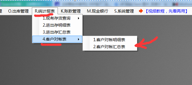 下面,我們來看一下,客戶對(duì)帳表在軟件里的哪個(gè)操作界面:(點(diǎn)擊圖片可以查看清晰大圖)