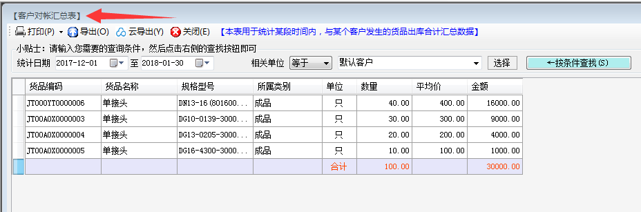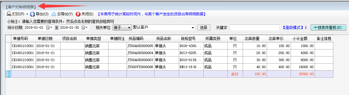 其中,客戶對(duì)帳明細(xì)表是用來統(tǒng)計(jì)在某段時(shí)間內(nèi),和客戶發(fā)生的每一筆詳細(xì)流水?dāng)?shù)據(jù)。(如果同一種貨品發(fā)生了多次交易,每一次交易都會(huì)顯示出來)