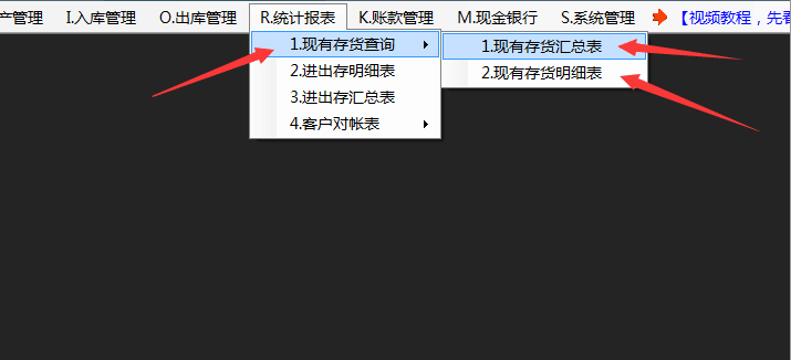 第三:在統(tǒng)計報表,現有存貨查詢表下面,會多出一個【現有存貨明細表】的功能。