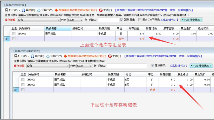 現有存貨明細表,是開啟了“倉位”功能之后,多出來的。