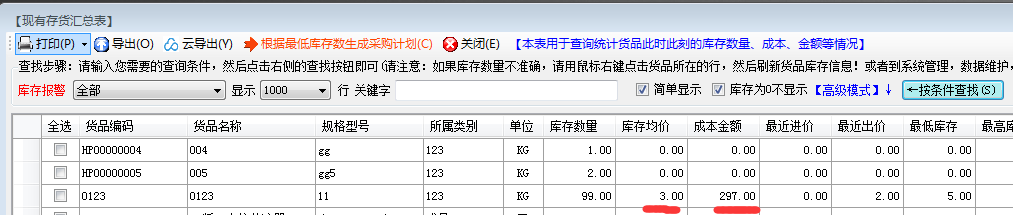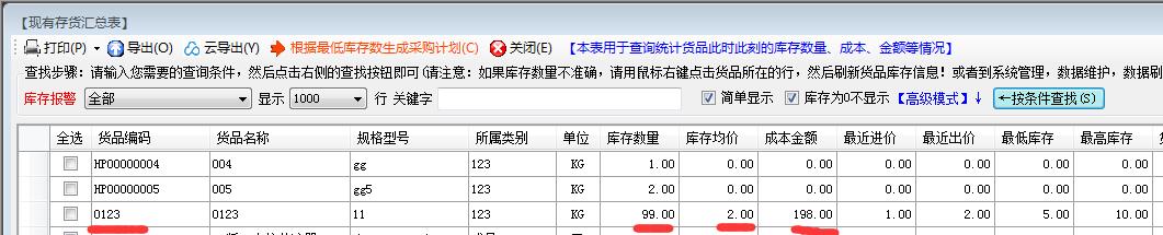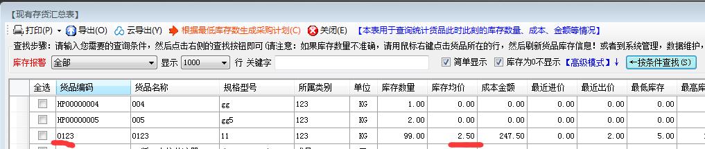 如上圖:貨品0123 的庫存數(shù)量為99 成本單價(jià)為2 庫存金額為198 現(xiàn)在,我想把它的單價(jià)調(diào)整為3,操作步驟如下。
