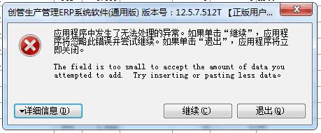 錯(cuò)誤提示:字段太小而不能接受所要添加的數(shù)據(jù)的數(shù)量。試著插入或粘貼較少的數(shù)據(jù)。。或者:The field is too small to accept the amount of data you attempted to add. Try inserting or pasting less data.的原因及解決辦法。