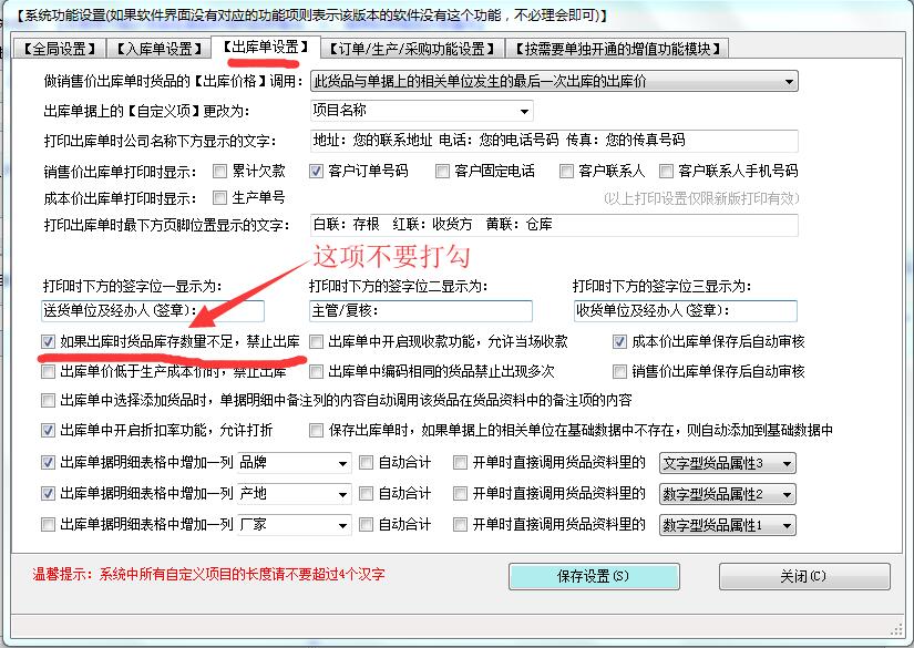 實(shí)際工作過程中,有可能存在先出庫再補(bǔ)貨的情況(炒貨),軟件也提供了一些特殊的處理方法,可以允許在庫存數(shù)量不足的情況下先進(jìn)行出庫,后續(xù)再補(bǔ)入庫單。(先出庫再補(bǔ)貨) 但是正常情況下我們一般不建議使用。 在系統(tǒng)管理,系統(tǒng)設(shè)置,系統(tǒng)功能設(shè)置,出庫單設(shè)置中,如果出庫時(shí)貨品庫存數(shù)量不足,禁止出庫  不要打勾就可以了。