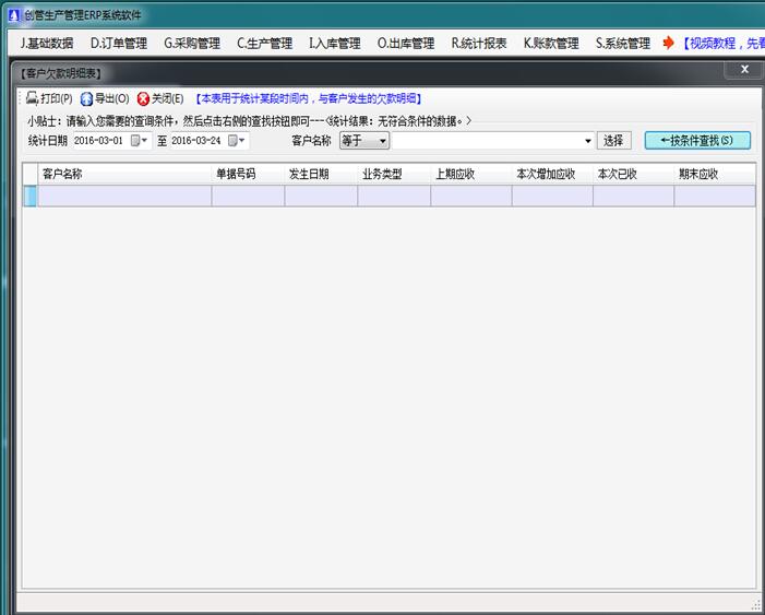 客戶欠款明細(xì)表,是根據(jù)銷售價(jià)出庫單,收款登記的數(shù)據(jù)自動生成的,用來統(tǒng)計(jì)與客戶發(fā)生的欠款明細(xì)數(shù)據(jù)。