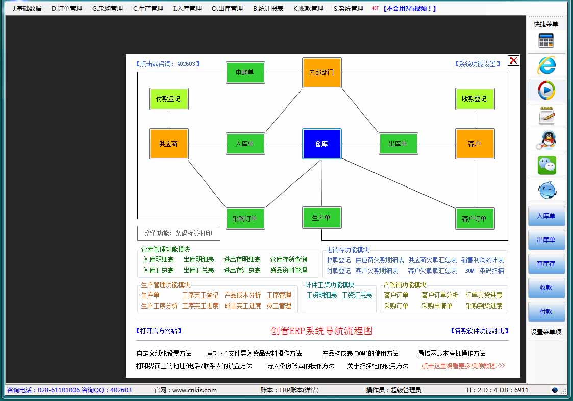 我們是企管王免費(fèi)ERP管理軟件開發(fā)商,我們免費(fèi)提供ERP免費(fèi)版,生產(chǎn)管理軟件免費(fèi)版,進(jìn)銷存免費(fèi)版,庫(kù)管軟件免費(fèi)版,手機(jī)維修軟件免費(fèi)版,記賬財(cái)務(wù)軟件免費(fèi)版給大家免費(fèi)下載試用。并提供免費(fèi)視頻操作教程和教學(xué)視頻給大家免費(fèi)學(xué)習(xí)使用。同時(shí)我們還提供軟件的全新定制開發(fā)和二次修改服務(wù),如果你需要定做軟件或者修改軟件功能,都可以聯(lián)系我們咨詢。我們的微信是:18628822218 手機(jī)同步。