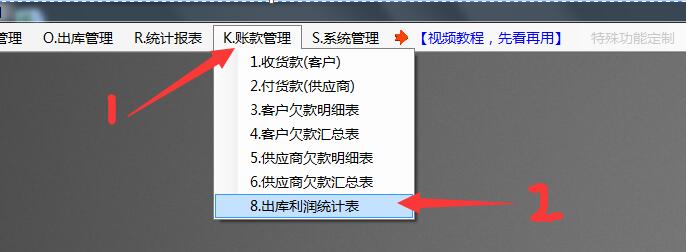 我們先依次點擊【賬款管理-利潤統(tǒng)計表】(點擊圖片可以查看清晰大圖)