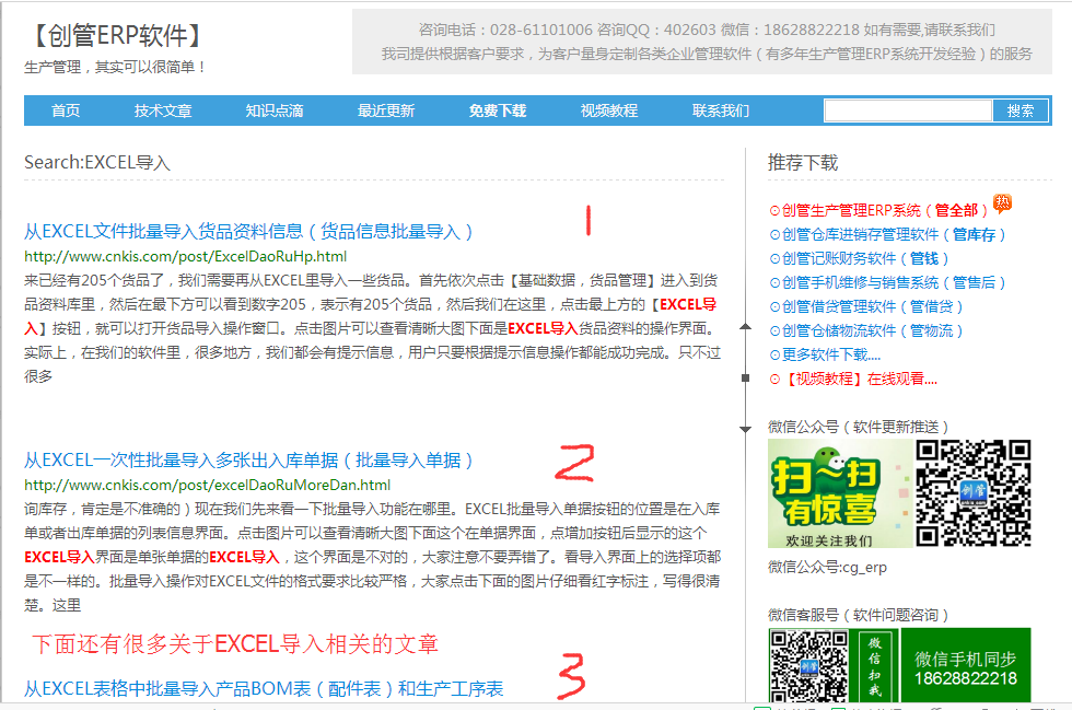 之后,系統(tǒng)會(huì)自動(dòng)打開(kāi)企管王ERP軟件,搜索“EXCEL導(dǎo)入”相關(guān)的文章。然后自動(dòng)列出來(lái),用戶就可以進(jìn)行點(diǎn)擊查看里面的具體內(nèi)容了。