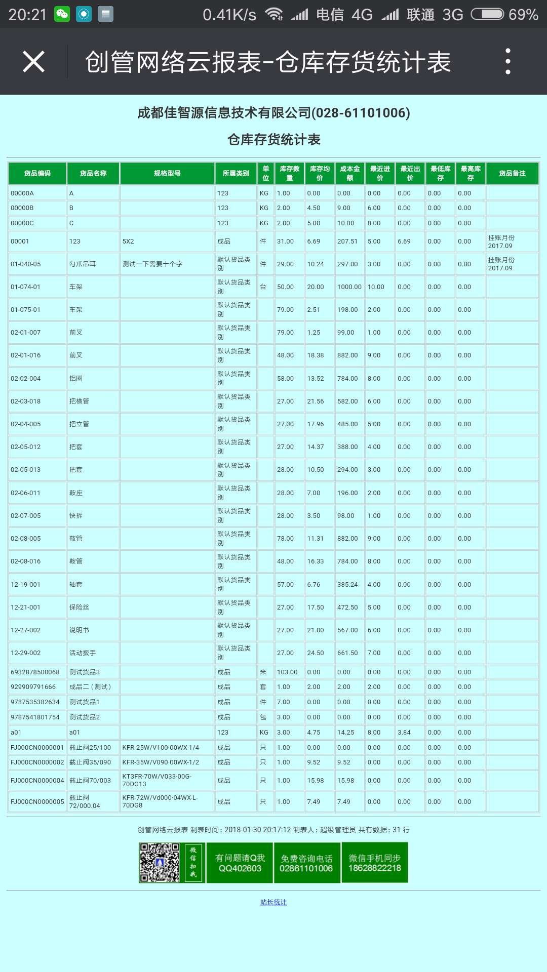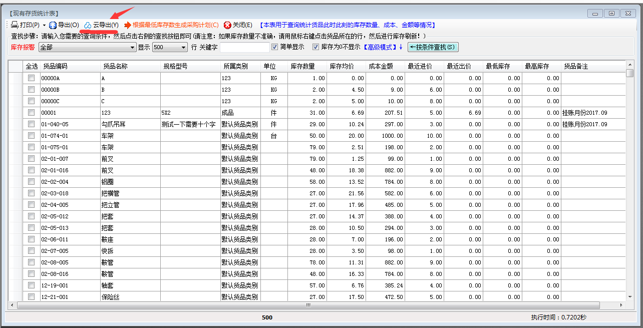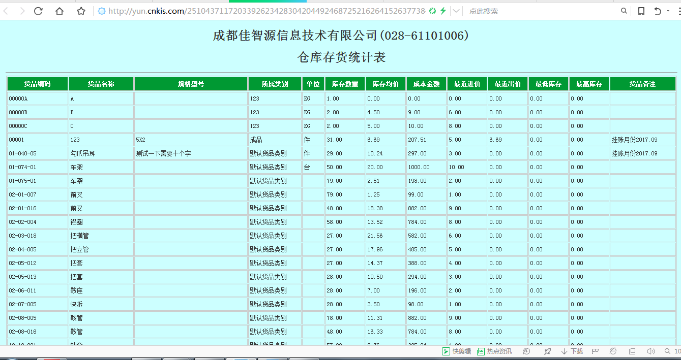 下面我們就以【現(xiàn)有存貨統(tǒng)計表】為例,來看一下這個網(wǎng)絡(luò)去報表功能是怎么使用的:(點擊圖片可以查看清晰大圖)